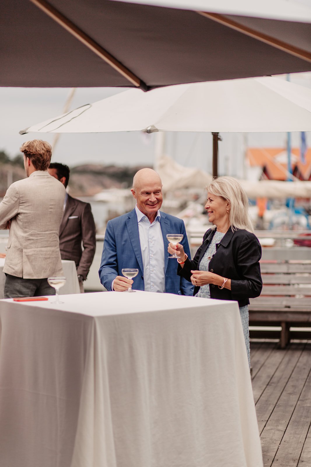 Hosting the wedding was their favourite seafood restaurant Matildas at Bryggan. It was not a traditional wedding venue and a bit of a challenge to manage the expectations from all sides.